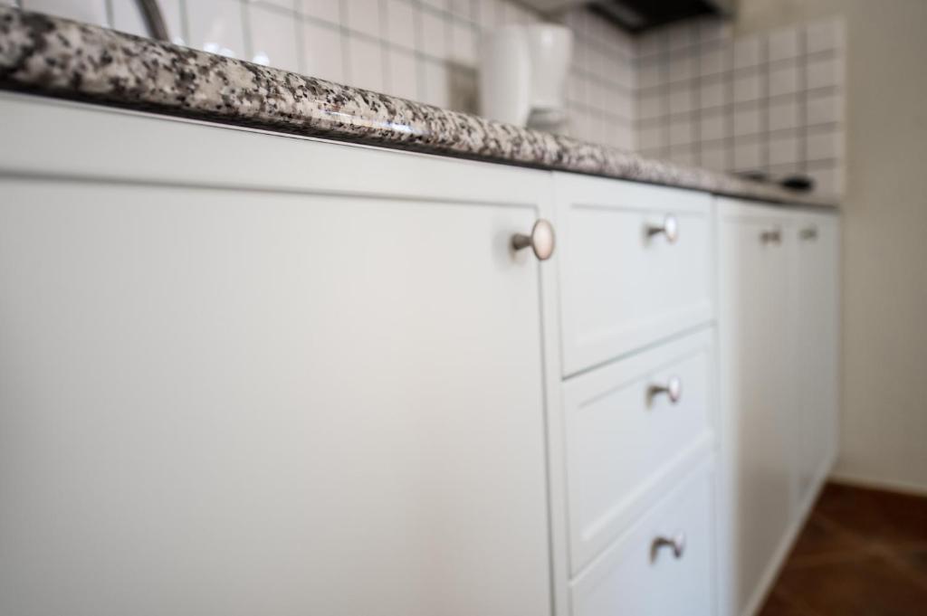 Die eleganten Ferienwohnungen bieten eine eigene Terrasse, einen TV, Fliesen- oder Marmorböden und eine voll ausgestattete Küchenzeile mit einem Essbereich. Im eigenen Bad liegt ein Haartrockner bereit.