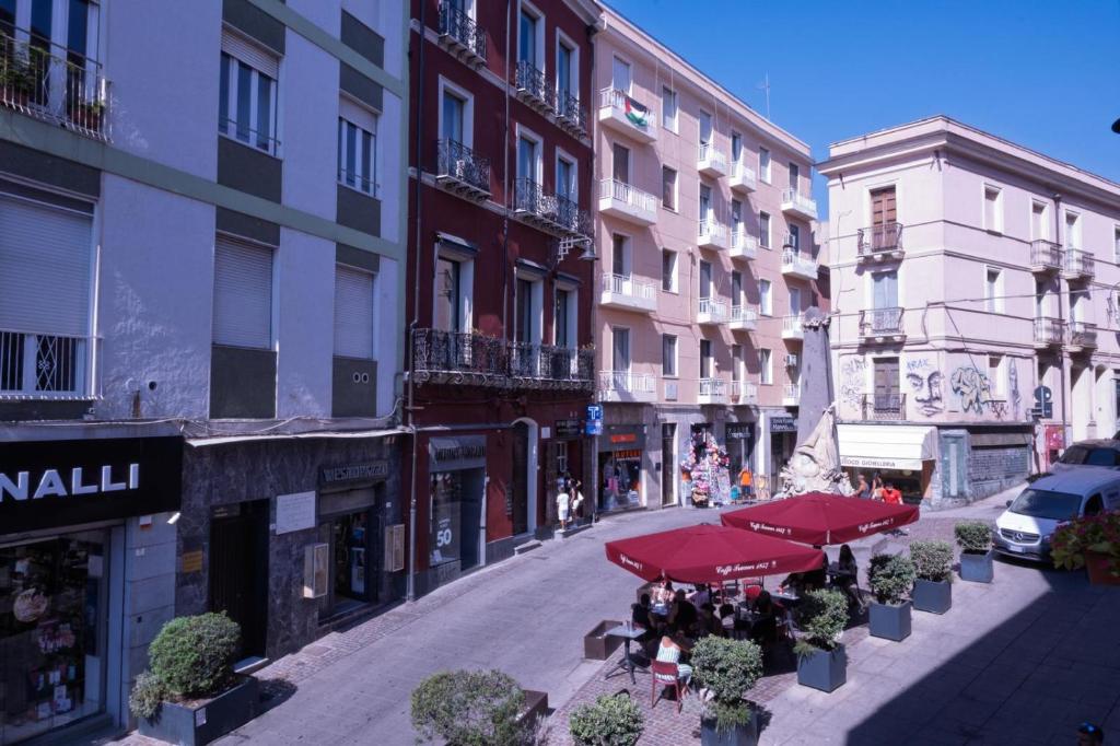 Die Unterkunft Cagliari Downtown - Piazza Martiri suite besticht durch Stadtblick und Übernachtungsmöglichkeiten mit einem Balkon und einem Wasserkocher, ungefähr 40 km von Ausgrabunggstätte Nora entfernt.