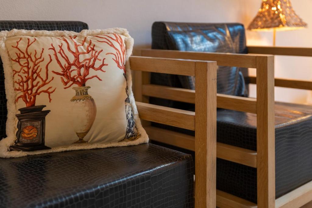 Diese Ferienwohnung mit Klimaanlage besteht aus 1 Schlafzimmer, einem Wohnzimmer, einer voll ausgestatteten Küche mit einem Kühlschrank und einer Kaffeemaschine sowie 1 Badezimmer mit einem Bidet und einer Dusche.