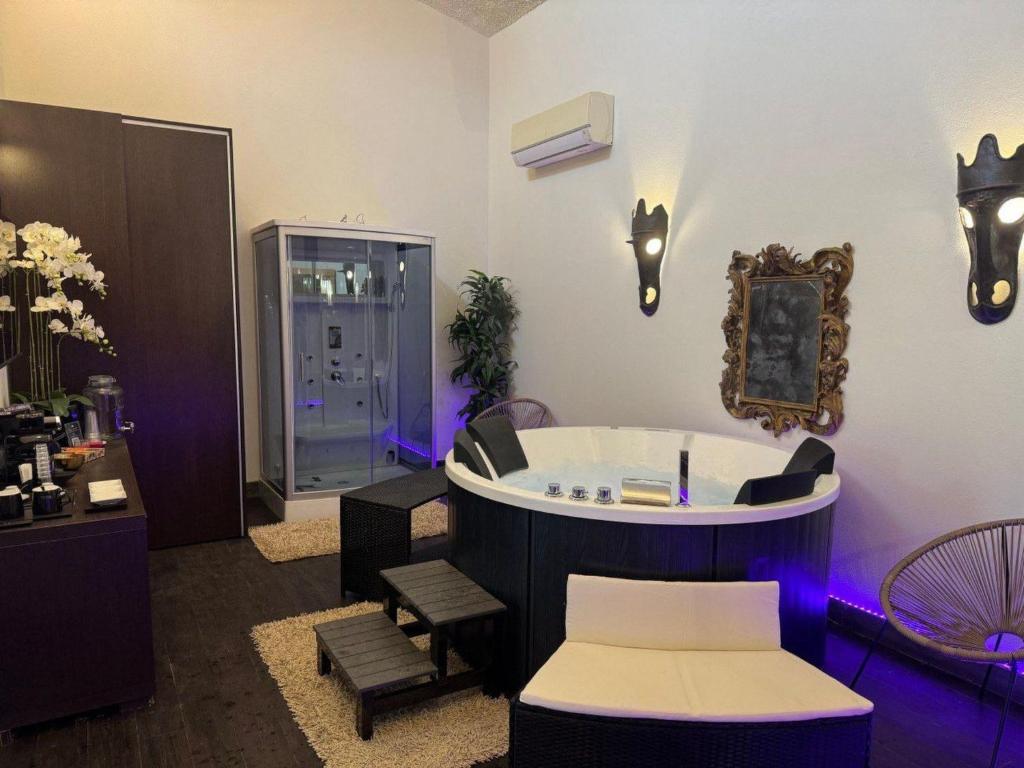 The fireplace is the standout feature of this holiday home. The spacious holiday home features air conditioning, as well as a private bathroom boasting a bath or a shower. The kitchenette features a refrigerator, a dishwasher and kitchenware. Guests can make the most of a terrace and a balcony.