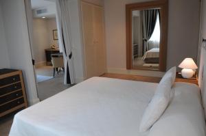 Das elegante Zimmer auf der obersten Etage verfügt über einen Balkon mit Panoramablick auf das Meer.