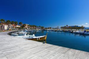 Zimmer im Erdgeschoss mit einem Patio und einem eigenen Wellnessbereich mit Blick auf den Garten und das Mittelmeer.