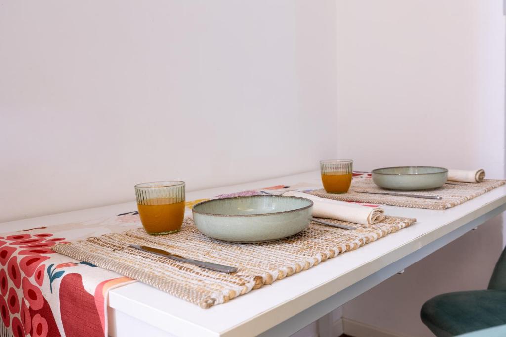 Diese Ferienwohnung mit Klimaanlage und 1 Schlafzimmer verfügt über 1 Badezimmer, ausgestattet mit einem Bidet, einer Dusche und kostenlosen Pflegeprodukten. Die Küche ist ausgestattet mit einem Kühlschrank und einer Mikrowelle, einer Herdplatte sowie einer Kaffeemaschine und einem Wasserkocher.