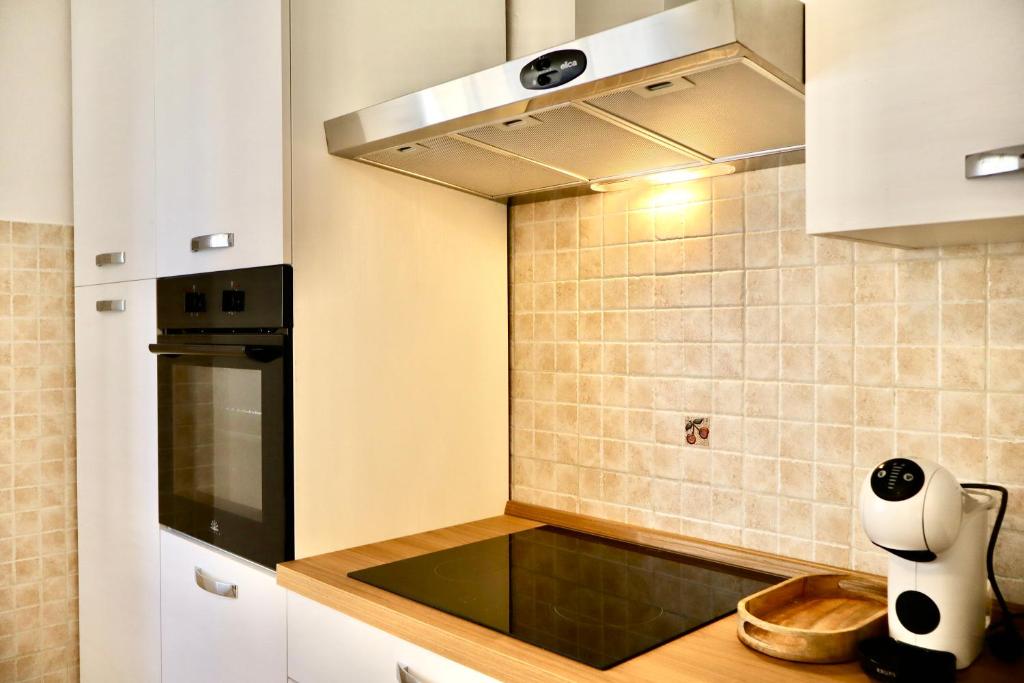 Diese Ferienwohnung mit Klimaanlage besteht aus 2 Schlafzimmern, einem Wohnzimmer, einer voll ausgestatteten Küchenzeile mit einem Kühlschrank und einer Kaffeemaschine sowie 1 Badezimmer mit einem Bidet und einer Dusche.
