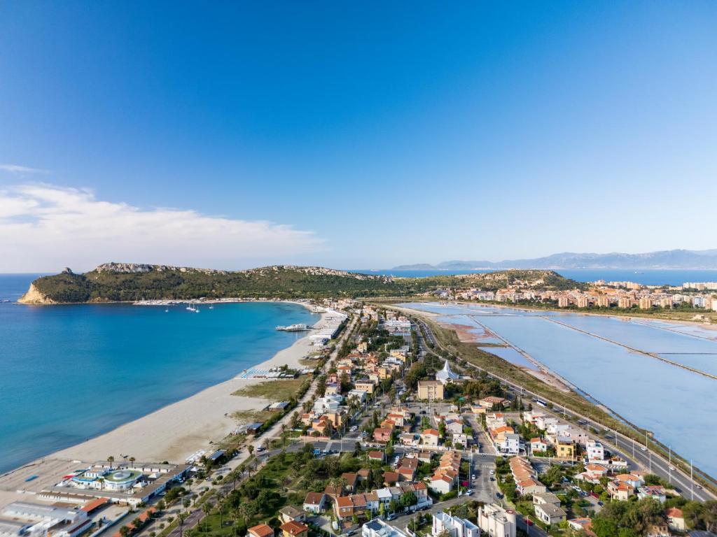 Die Unterkunft Sardinian Pearl - Poetto Beach Villa, South Sardinia verfügt über Bergblick und Übernachtungsmöglichkeiten mit einer Terrasse und einem Balkon, ungefähr 45 km von Ausgrabunggstätte Nora entfernt.