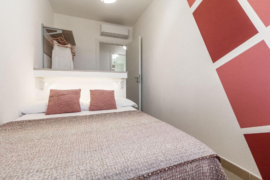 Diese Ferienwohnung mit Klimaanlage besteht aus 2 Schlafzimmern, einem Wohnzimmer, einer voll ausgestatteten Küche mit einem Kühlschrank und einer Kaffeemaschine sowie 1 Badezimmer mit einem Bidet und einer Dusche.