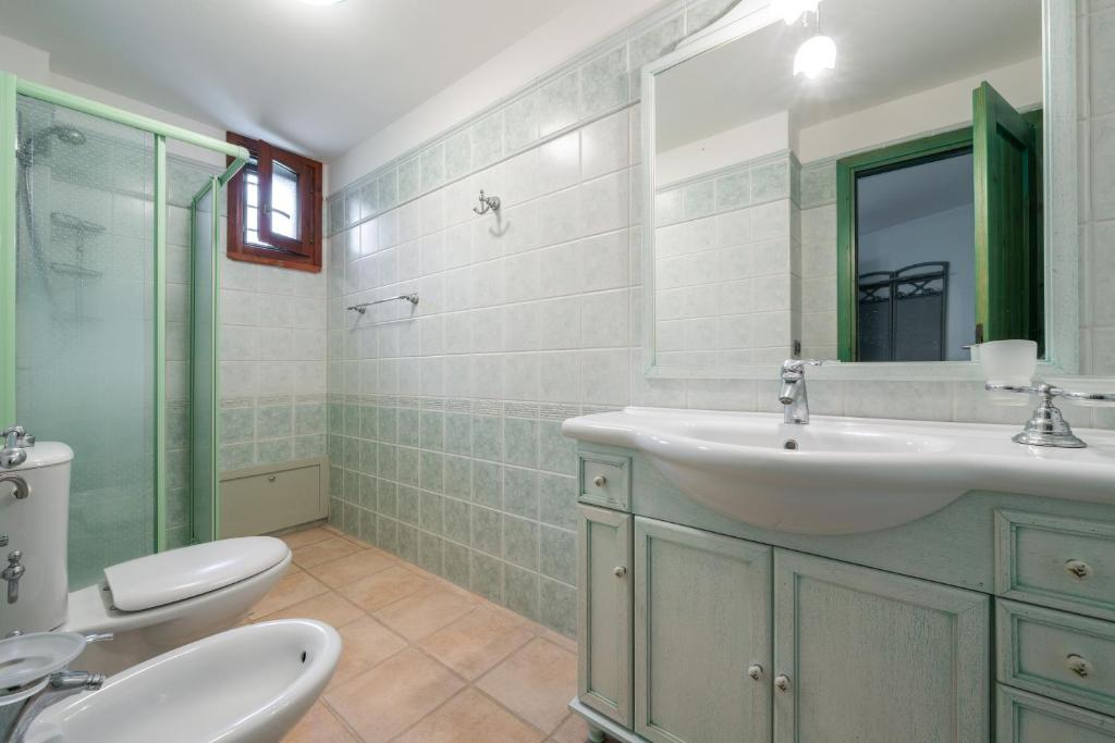 Handtüchern, einem TV, einer voll ausgestatteten Küche und einer Veranda / Patio mit Meerblick. Der nächstgelegene Flughafen ist der Flughafen Cagliari-Elmas, 101 km von der Unterkunft Villa Olga entfernt.