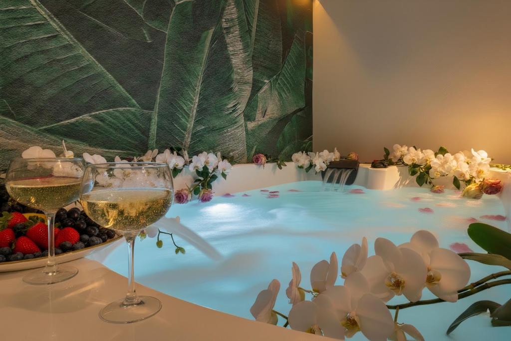 This suite features a hot tub. Boasting a private entrance, this air-conditioned suite features 1 living room, 1 separate bedroom and 1 bathroom with a bath and a shower. Guests can make meals in the kitchenette that has a stovetop, a refrigerator, a dishwasher and kitchenware. A seating area with a flat-screen TV, soundproof walls and a terrace are offered in this spacious suite. The unit has 2 beds.