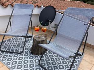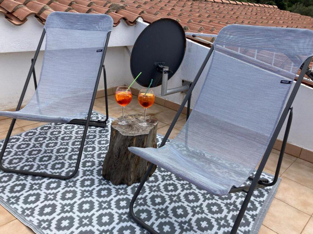 Offering a terrace and sea views, the spacious apartment includes 2 bedrooms, a living room, flat-screen TV, an equipped kitchen, and 1 bathroom with a shower. Guests can enjoy a meal on an outdoor dining area while overlooking the mountain views.