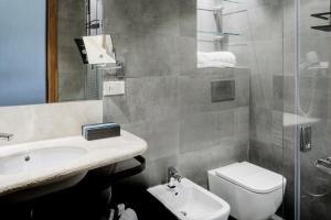 Set on an upper floor, but accessible via elevator, this room's furnished balcony faces the street. It has a bathroom with disability access and no bidet. This room cannot accommodate extra beds.