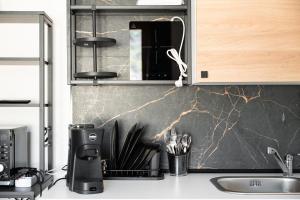 Questo appartamento con aria condizionata comprende 1 camera da letto, un soggiorno, una cucina con utensili, microonde e macchina da caffè, e 1 bagno con doccia e set di cortesia. Presso questo appartamento troverete asciugamani e lenzuola a disposizione.