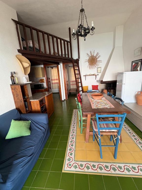 Questo appartamento comprende 2 camere da letto, 1 bagno, lenzuola, asciugamani, una TV, una zona pranzo, una cucina con utensili e una terrazza con vista sul mare. Questo appartamento prevede un’area giochi per bambini.