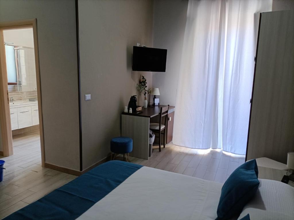 Camera matrimoniale climatizzata con TV satellitare a schermo piatto, bagno privato e balcone vista città. L’alloggio dispone di 1 letto.