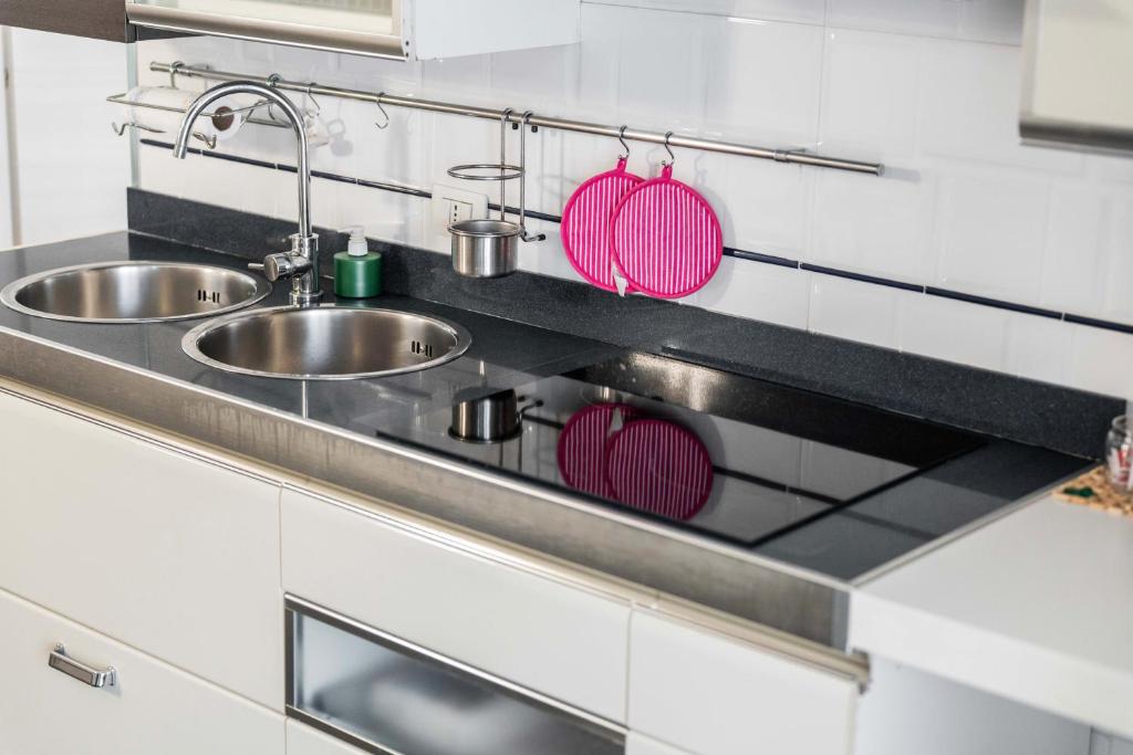 Questo appartamento con aria condizionata comprende 1 camera da letto, un soggiorno, una cucina con utensili, frigorifero e macchina da caffè, e 1 bagno con doccia e set di cortesia. Presso questo appartamento troverete asciugamani e lenzuola in dotazione.