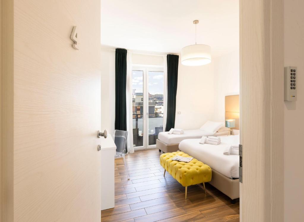 The twin/double room provides air conditioning, soundproof walls, a terrace with city views as well as a private bathroom featuring a walk-in shower.