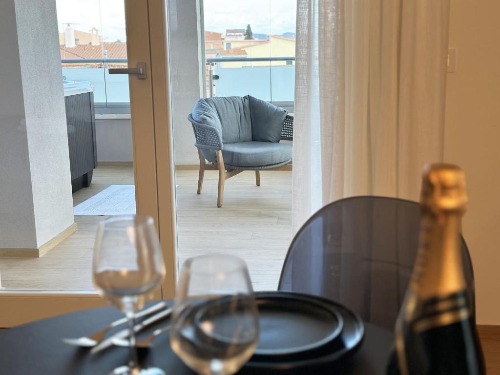 Questo appartamento presenta 1 camera da letto, 1 bagno, lenzuola, asciugamani, una TV a schermo piatto, una zona pranzo, una cucina con utensili e una terrazza con vista sulla città. L'area benessere presso questo appartamento comprende una sauna e una vasca idromassaggio.