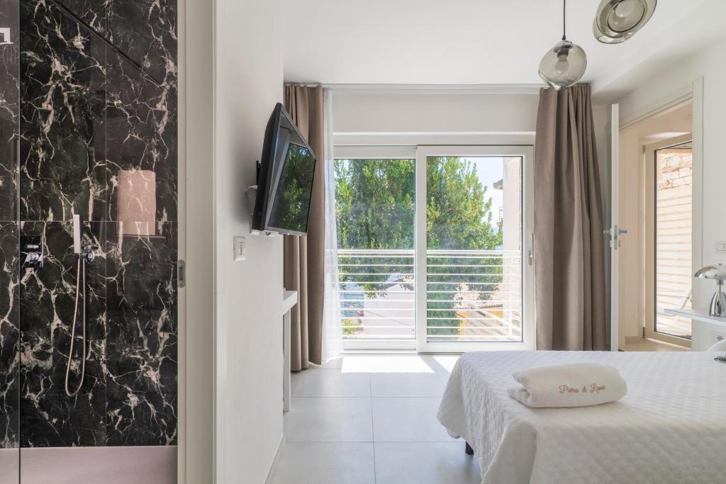 Camera matrimoniale climatizzata dotata di TV a schermo piatto con canali via cavo, bagno privato e terrazza con vista sul mare. L’alloggio dispone di 1 letto.