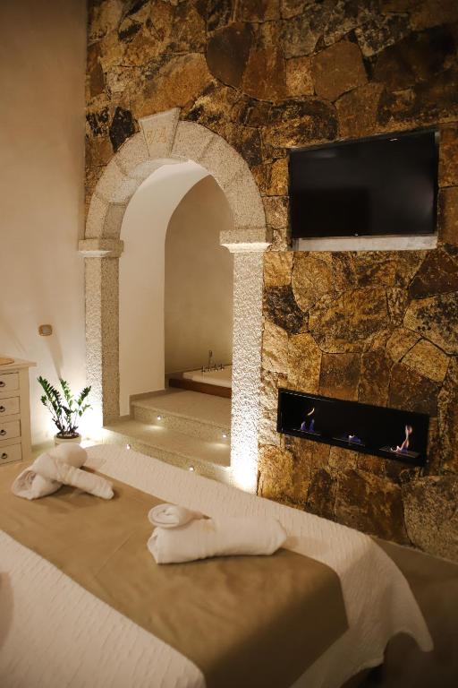 Suite dotata di vasca idromassaggio e piscina con vista. Dotata di ingresso privato, questa suite climatizzata comprende 1 camera da letto e 1 bagno con vasca e doccia. La suite dispone inoltre di un armadio, una TV a schermo piatto e una terrazza con viste sul giardino. L’alloggio presenta 1 letto.