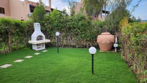 Boasting a private entrance, this air-conditioned holiday home comes with 1 living room, 2 separate bedrooms and 2 bathrooms with a shower and a bidet. Guests will find a stovetop, a refrigerator, a dishwasher and kitchenware in the fully equipped kitchen. The holiday home also includes a barbecue. Featuring a terrace with garden views, this holiday home also features a washing machine and a flat-screen TV with satellite channels. The unit has 4 beds.